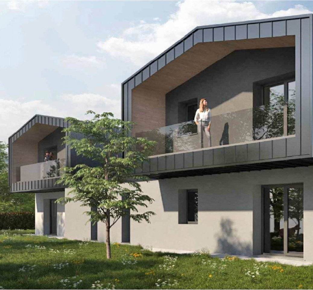 CASTELCUCCO, a due passi dal centro , un angolo di esclusività..., immersi nel verde, con vista aperta sui Colli Asolani e Monte Grappa , in vendita villetta bifamiliare di nuova costruzione di mq 250 su due livelli ,piano terra composto da luminosa zona living soggiorno con vetrata scorrevole verso il porticato , pranzo-cucina, ripostiglio lavanderia , disimpegno,ingresso,giardino privato 160 mq, posti auto coperti.