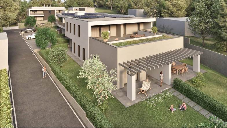 Splendido appartamento al piano primo con terrazze facente parte di un complesso di 14 appartamenti in zona residenziale a Caerano vicino al centro e a tutti i servizi.